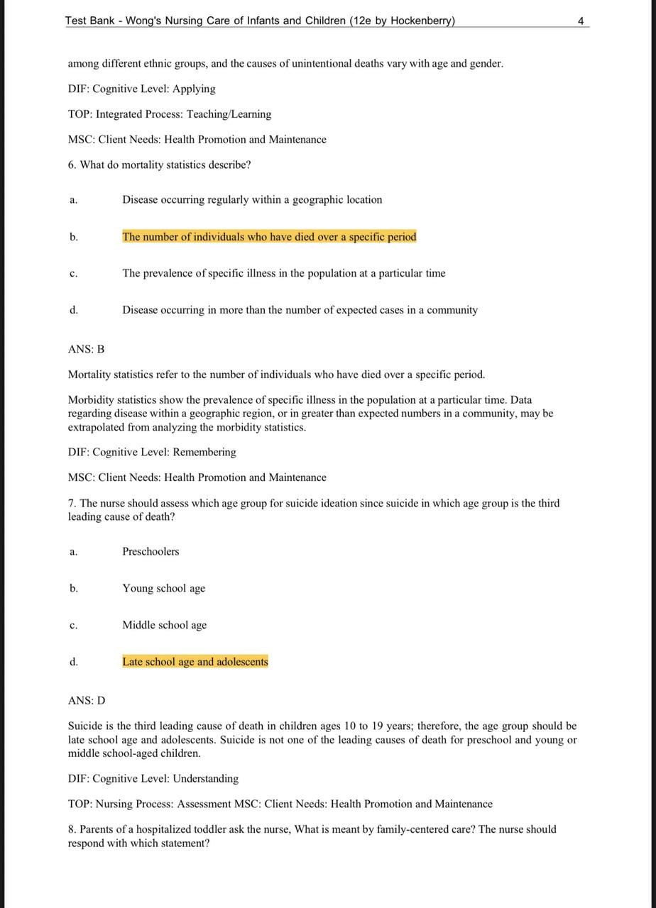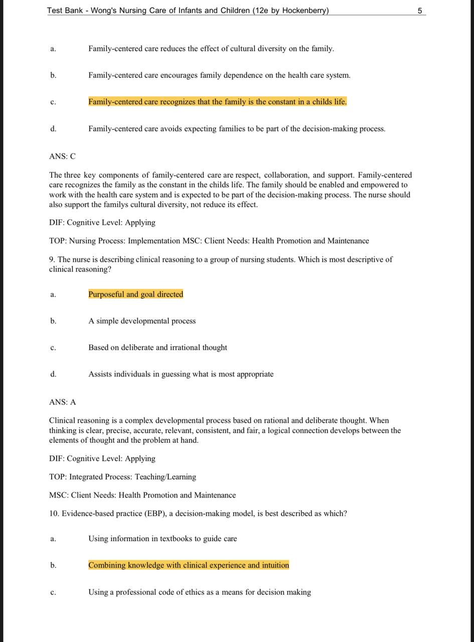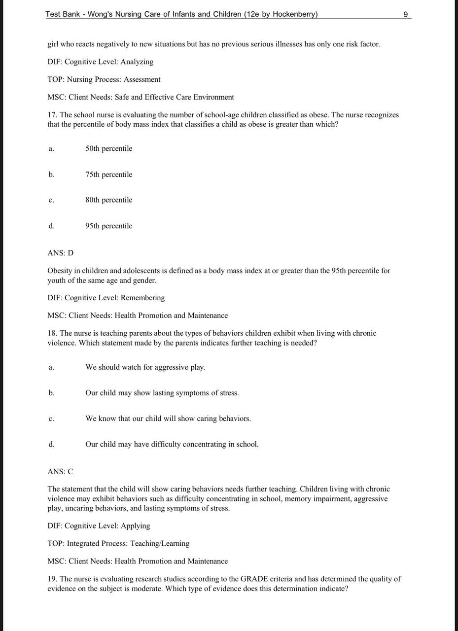 Test Bank for Wong’s Nursing Care of Infants and Children – 12th Edition (Hockenberry)